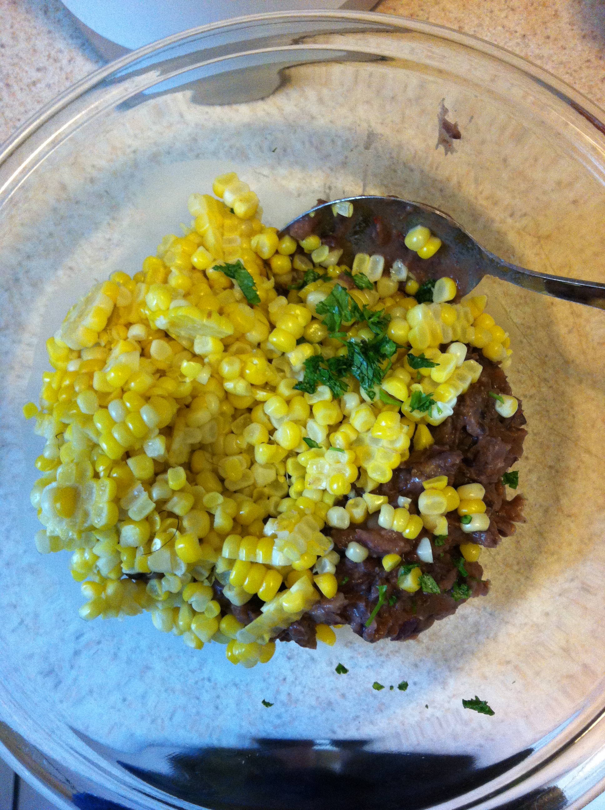 Image Posted by Jen Posted on 17 August 2013 Posted in Baked Black Bean and Corn Fritters with Spicy Sour Cream Dip Comments Leave a comment Corn kernels, cilantro, and bean mixture Size: 1936 × 2592 Post a comment or leave a trackback: Trackback URL.